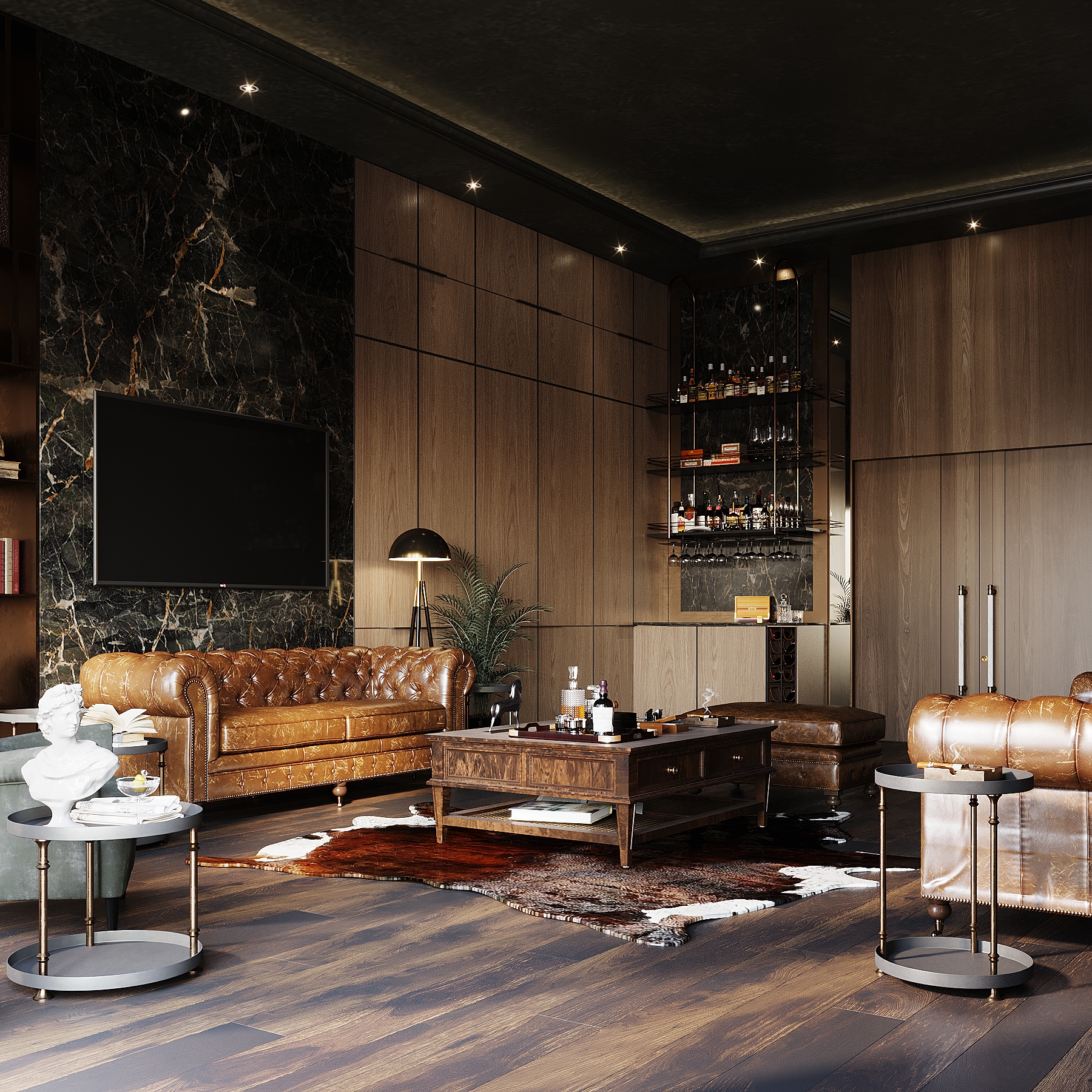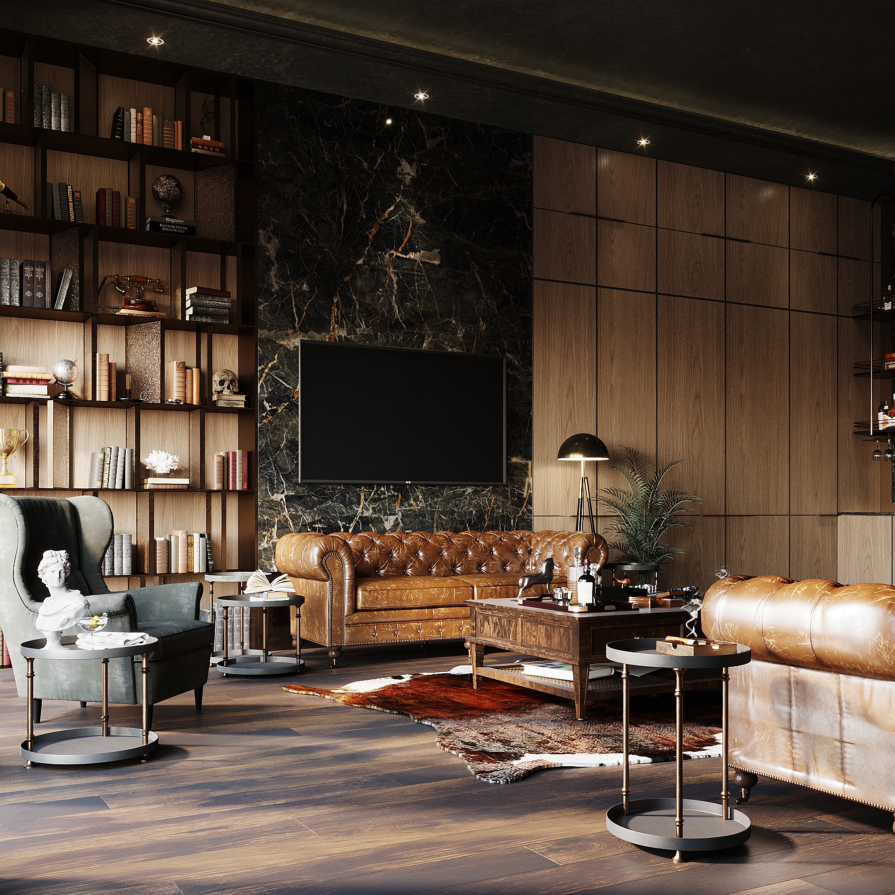 The interior features a range of organic, natural features that are reminiscent of the outdoors. It may utilize farmhouse decor or may veer towards an in-the-woods feel.