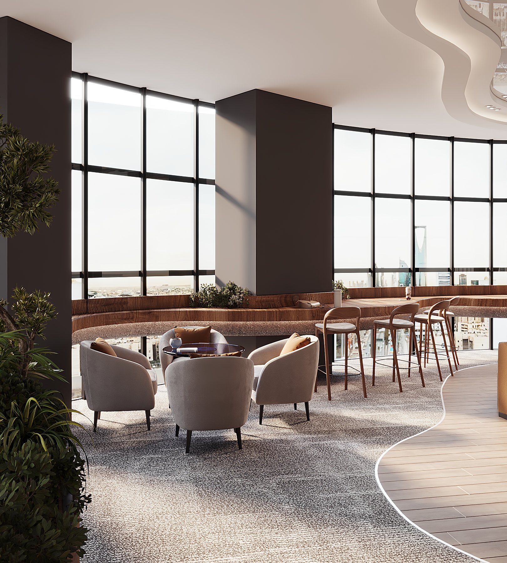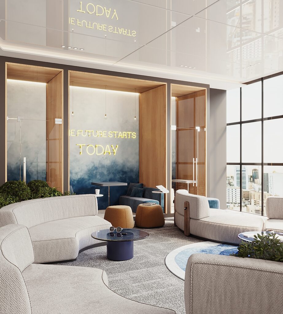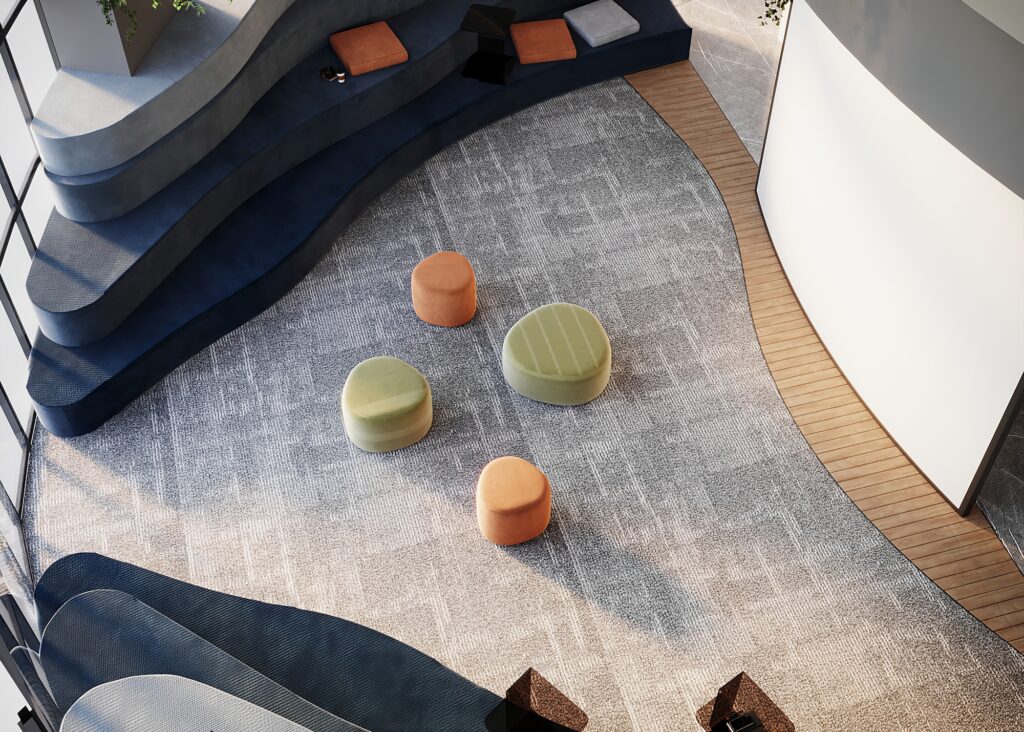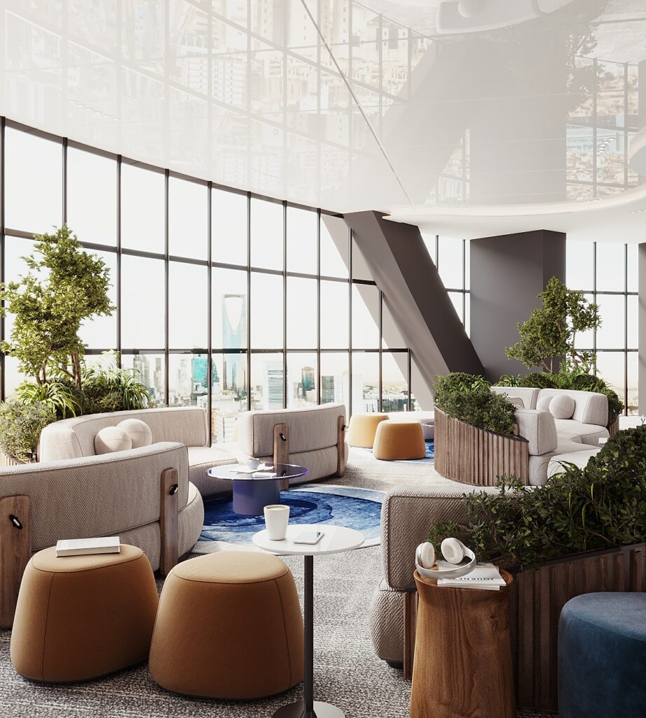 This office interior design places emphasis on the importance of teamwork. There are several areas in the office that are conducive to spontaneous collaboration and even a picnic table in the café to work, charge your laptop or talk to colleagues.well as reception areas, which are open and welcoming.